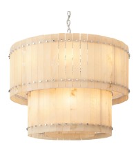 The San Marco round tiered chandelier shines with 1960s Italian glamour. Enclosed by a sleek metal frame, dozens of translucent alabaster panes dance with light, casting dramatic patterns and a gentle, diffused radiance. Perfect for dining room, living room and hallways.